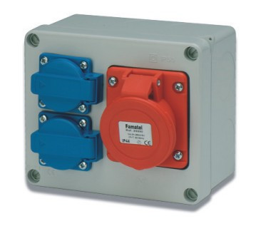Famatel 3073 szerelő doboz 2db házt. alj + 1db 5P 16A ip. alj, IP44