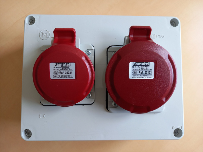 Famatel 3074 szerelő doboz 1db 5P 16A + 1db 5P 32A ip. alj, IP44