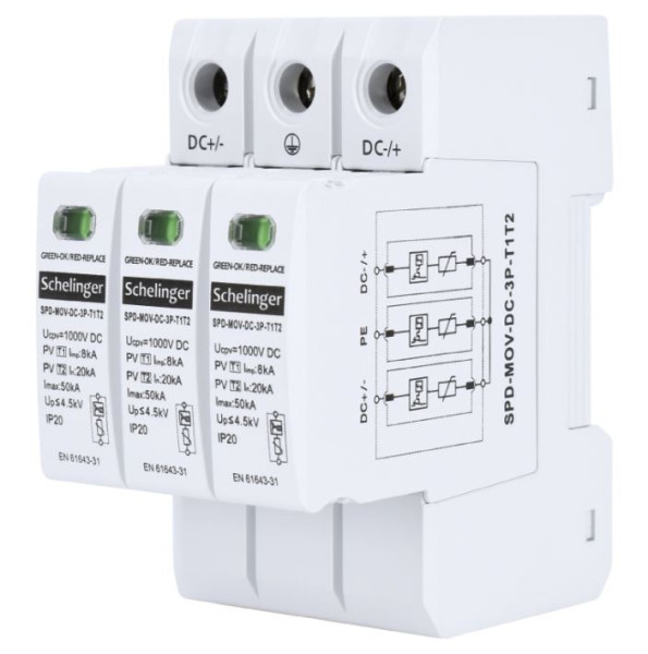 Bemko 3P Túlfeszültség levezető "B+C" 8kA/20kA 1000V/DC