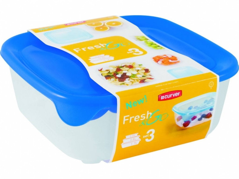 Sokoldalú készlet CURVER "FRESH&GO" téglalap ételtartó 0,25 L + 0,8 L + 1,7 L – snacktől a főételig; átlátszó dobozok megbízható fedéllel, BPA-mentes; jól kombinálható, helytakarékos.