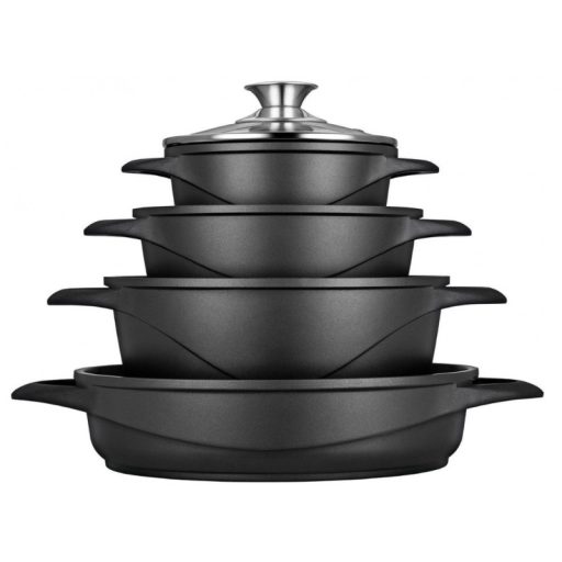 A Smile márka ezen gyönyörű edénykészlete minden konyhát frisseséggel ruház fel. A edények bármilyen főzőlaphoz alkalmasak, beleértve az indukciós, gázos és elektromos főzőlapokat is. Tehát akkor is, ha otthont vagy konyhát cserél, továbbra is használhatja ezeket az edényeket. A fekete anyag és az üvegfedél fényűző és stílusos megjelenést biztosít, bármilyen színű is legyen a konyhája. A gyönyörű megjelenés mellett a serpenyők is kiváló minőségűek; mindegyikük tapadásmentes bevonattal, rozsdamentes acél gombokkal és vastag falakkal rendelkezik az egyenletes hőelosztás érdekében. Tökéletes edénykészlet főzéshez, rántáshoz, pároláshoz vagy pörköléshez.
