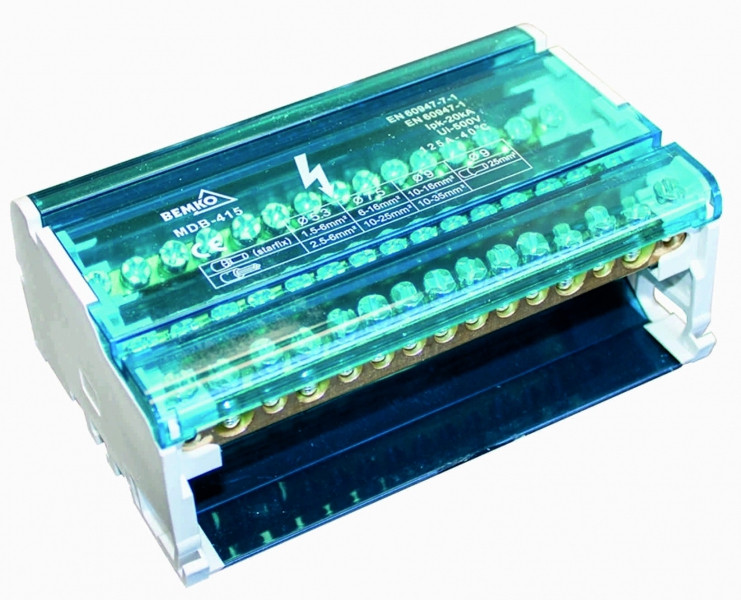 Bemko Elosztóblokk, 125A, 4db sín (15 furat/sín)