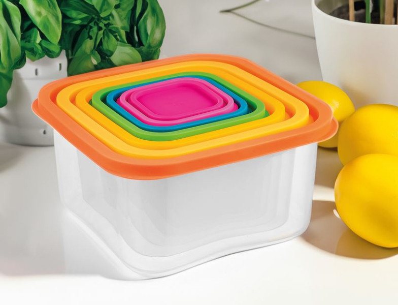 Smile Ételtartó, 7 darabos, szines fedelekkel