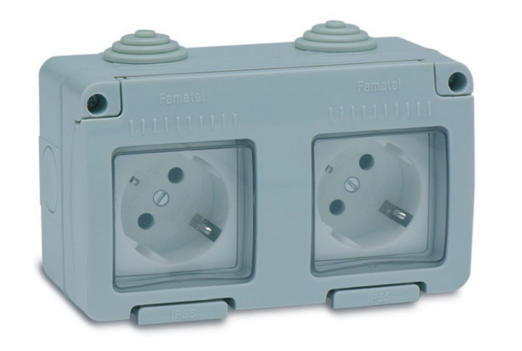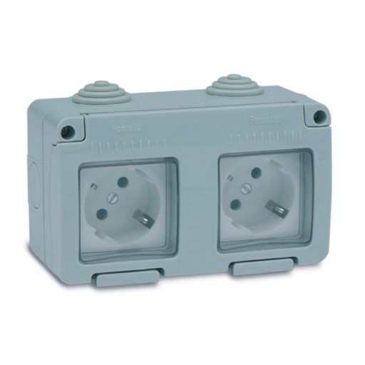 Famatel Falon kívüli 2db egyben háztartási dugalj, 16A-250V, IP55