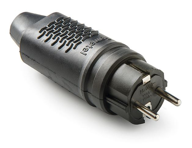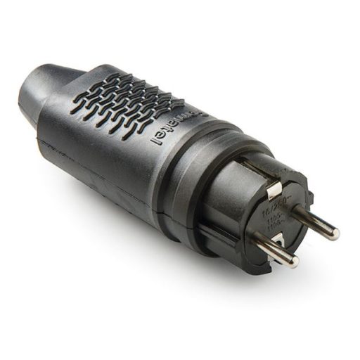 Famatel Földelt gumi dugvilla fekete erősített 16A 250V