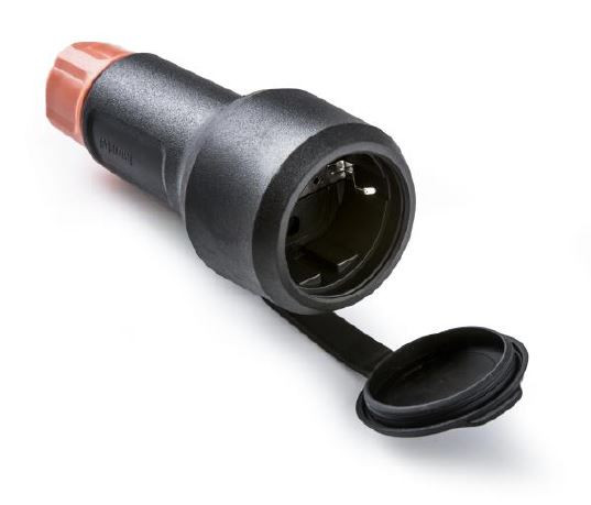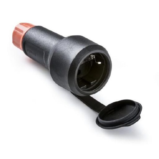 Famatel Földelt gumi lengődugalj csapfedéllel fekete, tömszelencés, IP54