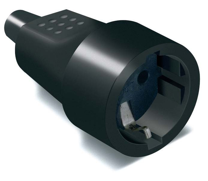 Famatel Földelt gumi lengődugalj, fekete, 16A-250V