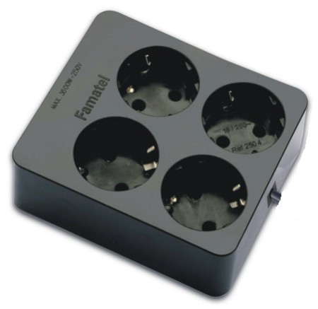 Famatel Földelt szerelhető elosztó négyes /négyzet/ fekete, 16A-250V