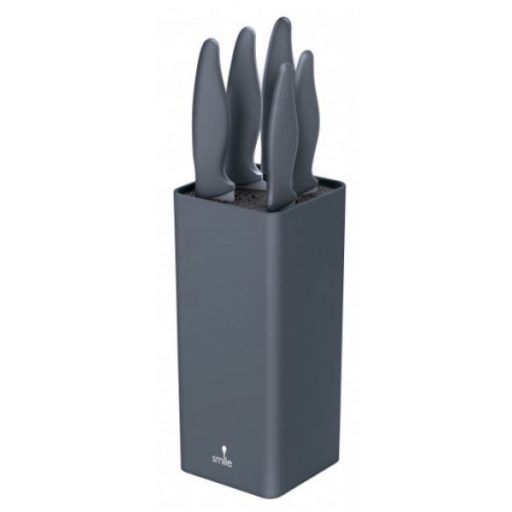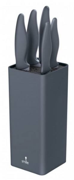 A kés nyeleit puha tapintású bevonat borítja , aminek köszönhetően kényelmesen illeszkednek a kézbe. A késkészlet egy elegáns, műanyag rúddal töltött tömbben van elhelyezve. A rudakkal ellátott betét eltávolítható, ami sokkal könnyebbé teszi a készlet tisztán tartását . Bármilyen acél és kerámia kés behelyezhető a blokkba.