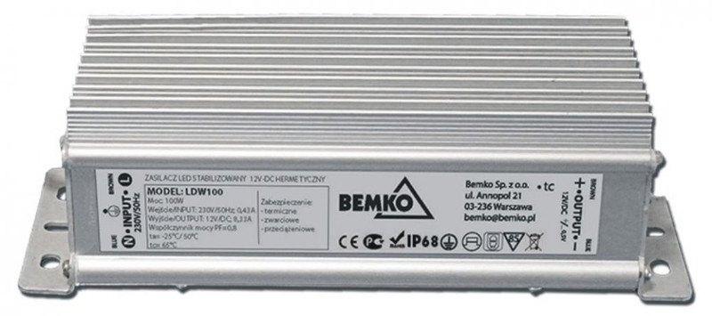 Bemko Led tápegység 100W 12V/DC fémház, IP68