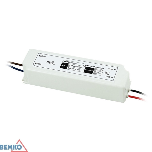Bemko Led tápegység 36W 12V műanyag ház IP65