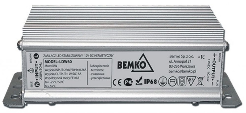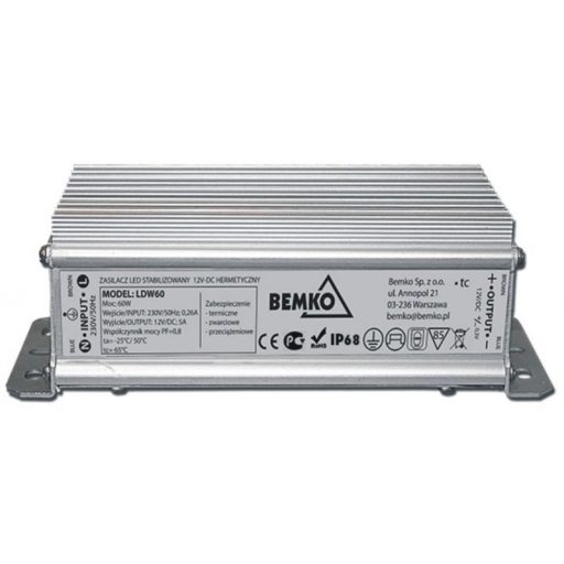 Bemko Led tápegység 60W 12V/DC fém ház, IP68
