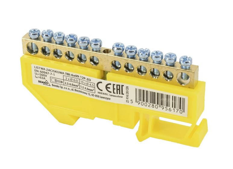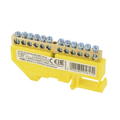 Bemko Sínre pattintható vezeték közösítő 12-es, 63A, sárga