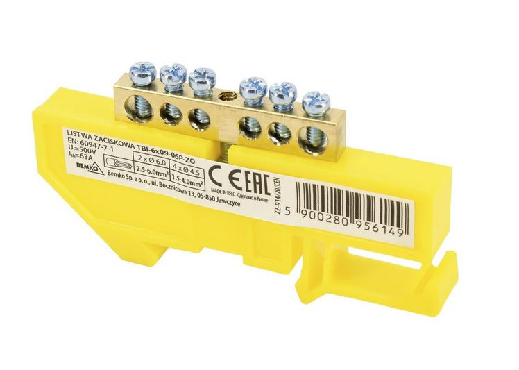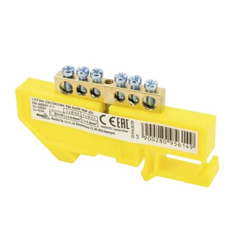 Bemko Sínre pattintható vezeték közösítő 6-os, 63A, sárga