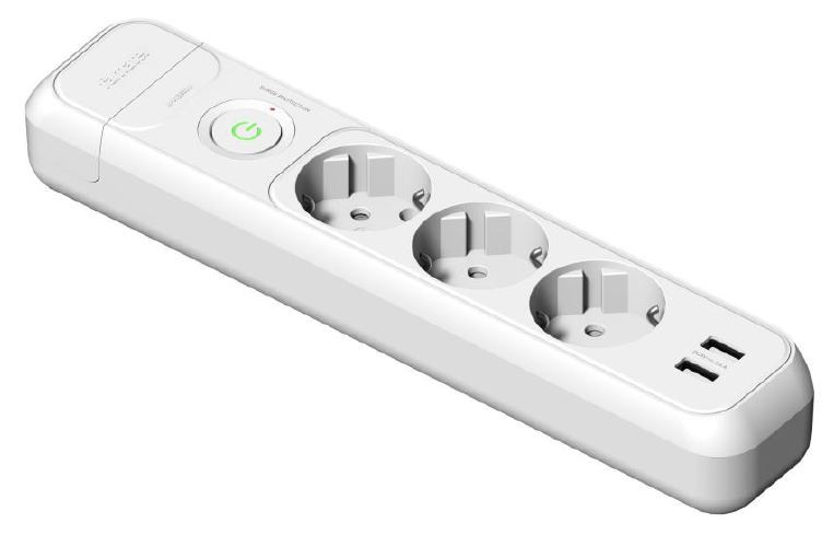 Famatel Szerelhető elosztó hármas+ kapcs+2db USB+ túlfeszvéd.