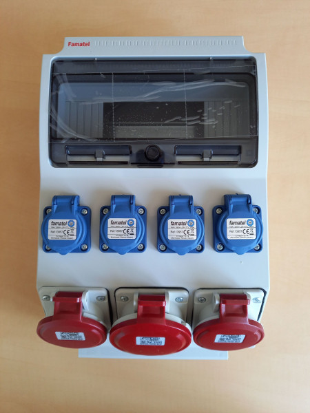 Famatel Szerelt 12 mod.  ipari doboz 4db HT, 2db 5P 16A, 1db 5P32A  IP44