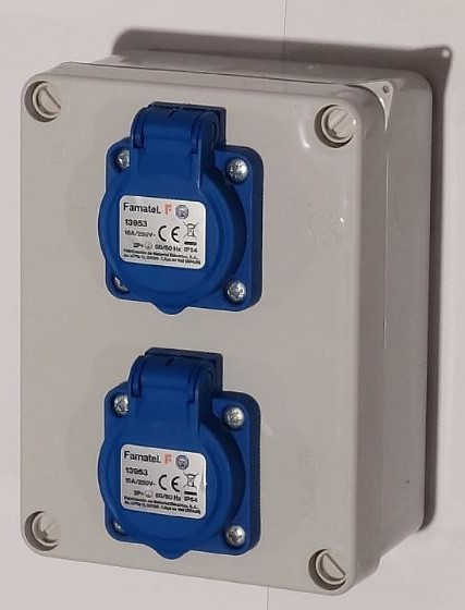 Famatel Szerelt doboz 1db 3072 + 2db házt. alj, 16A, IP44 függőleges
