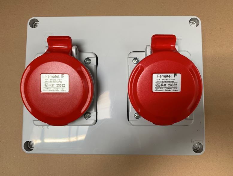 Famatel Szerelt ipari doboz 3074 + 2db 4P 32A ipari, IP44