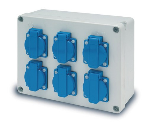 Famatel Szerelt ipari doboz 3074 + 6db házt. alj 16A, IP44