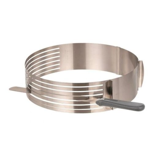 A SMILE SAK-9 tortavágó gyűrű kiváló minőségű rozsdamentes acélból készült , így biztosítja a tartósságot és a rozsdaállóságot. 24,5 és 33 cm között állítható átmérőnek köszönhetően a pereme tökéletesen alkalmazkodik a különféle tortaméretekhez. Lehetővé teszi, hogy pontosan 7 egyenlő rétegre vágja a tortát, ami megkönnyíti a tetszetős pékáruk elkészítését. Hosszú pengével ellátott kés, amely kényelmes és precíz vágást garantál. A pereme egyenletes és esztétikus vágást biztosít, kiemelve a desszert professzionális megjelenését.