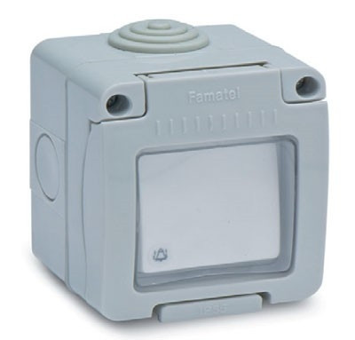 Famatel Vízmentes csapfedeles nyomó lámpajellel, 10A-250V IP55
