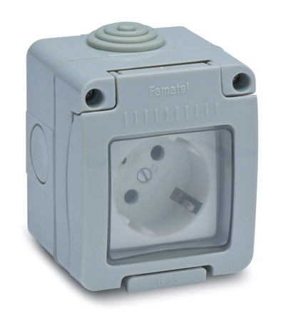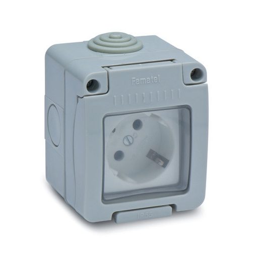 Famatel Vízmentes dugalj, falon kivüli, 16A-250V, szürke, IP55