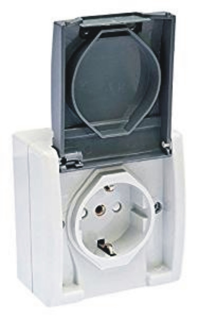 Famatel Vízmentes dugalj, falon kivüli, 16A-250V, szürke, IP55